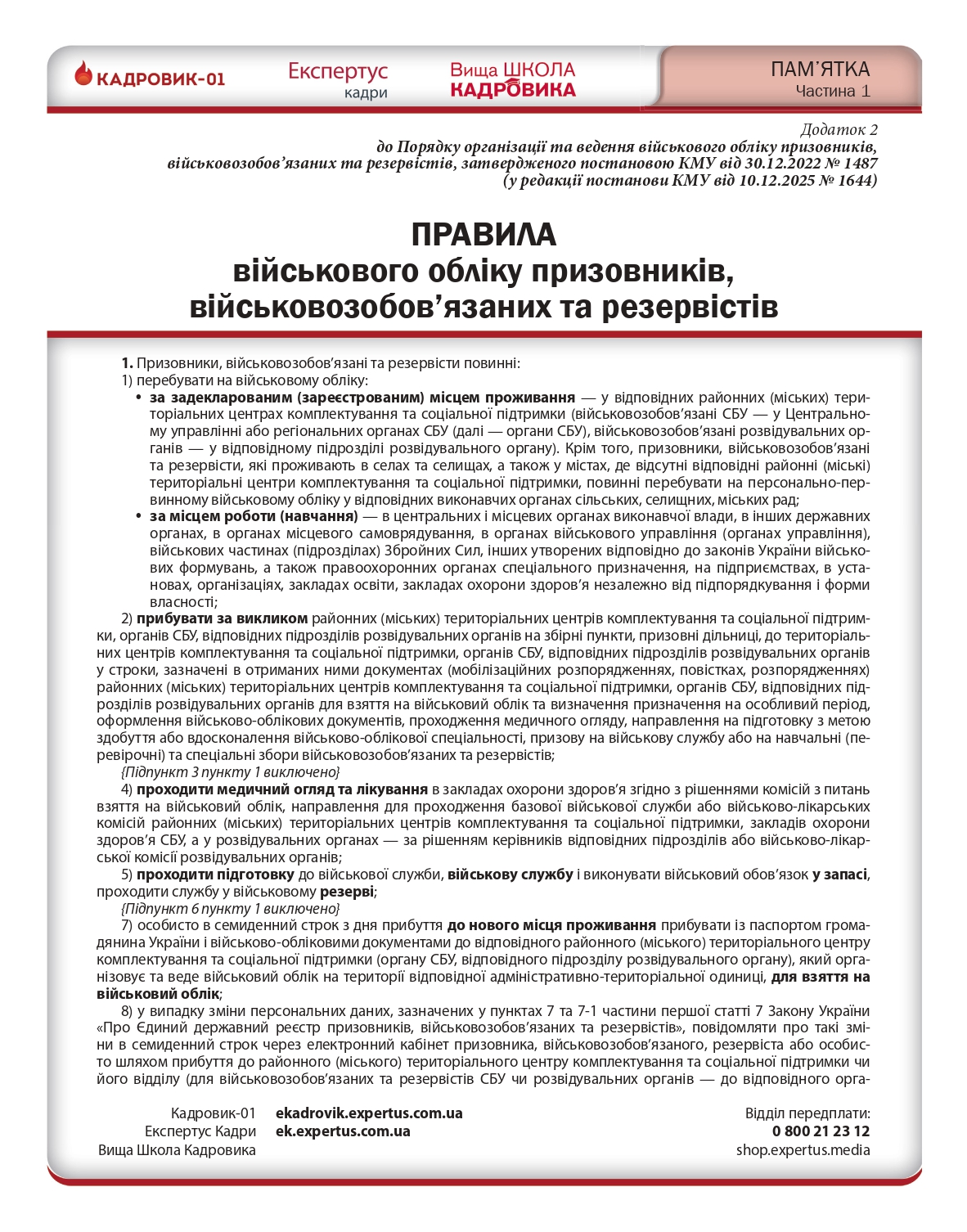 Розмістіть правила на стенді підприємства. Із 16 грудня 2025 року змінився підпункт 9 пункту 1 та пункт 3, що стосуються форми військово-облікового документа