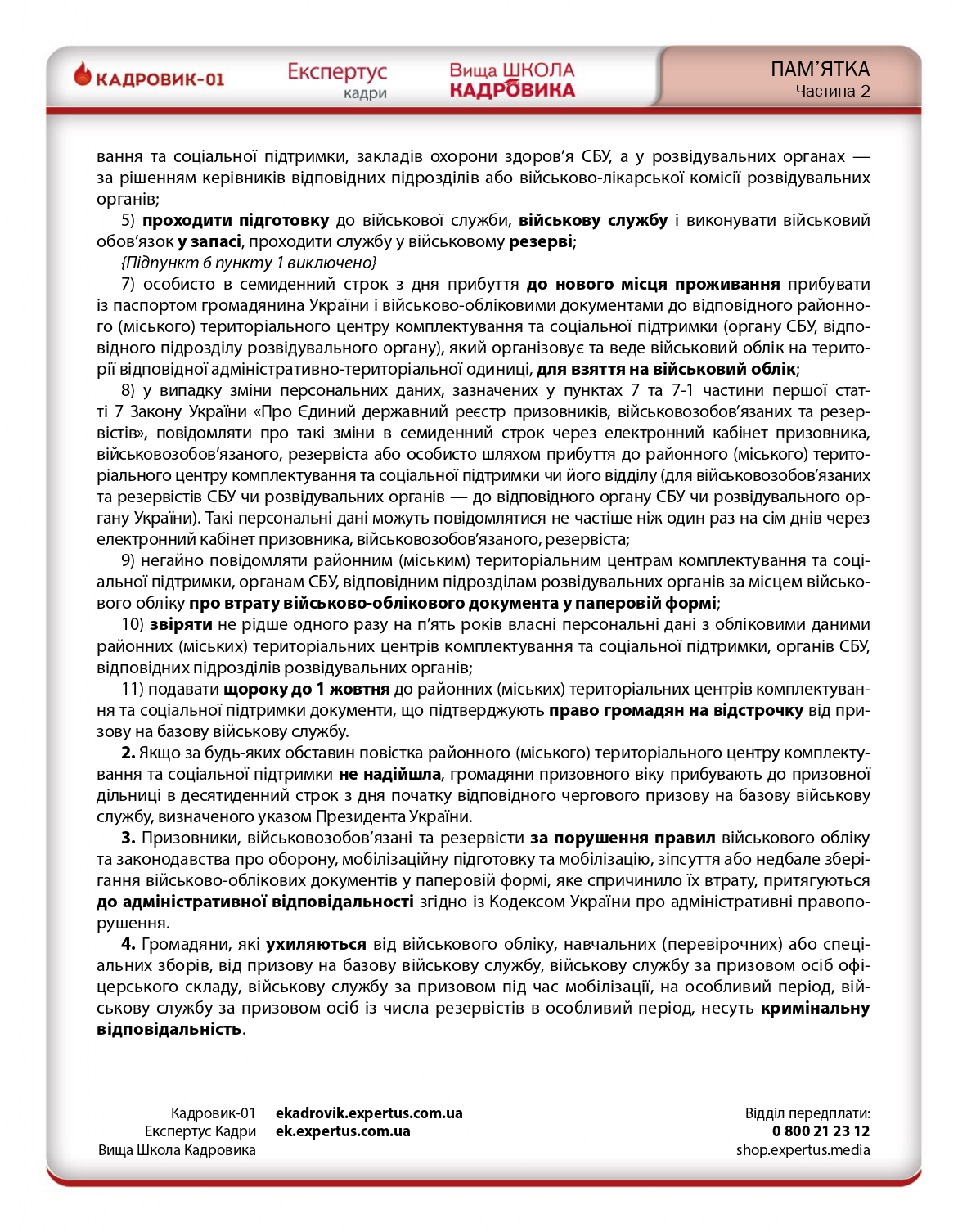 Пам’ятка. Правила військового обліку призовників, військовозобов’язаних та резервістів
