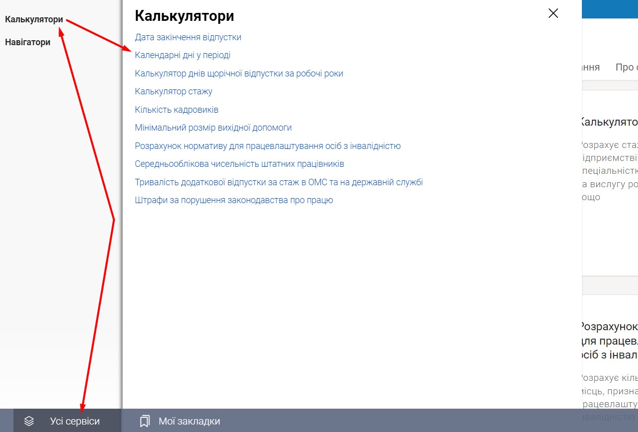 Також його можна знайти у рубрикаторі «Усі сервіси» у підрубриці «Калькулятори».
