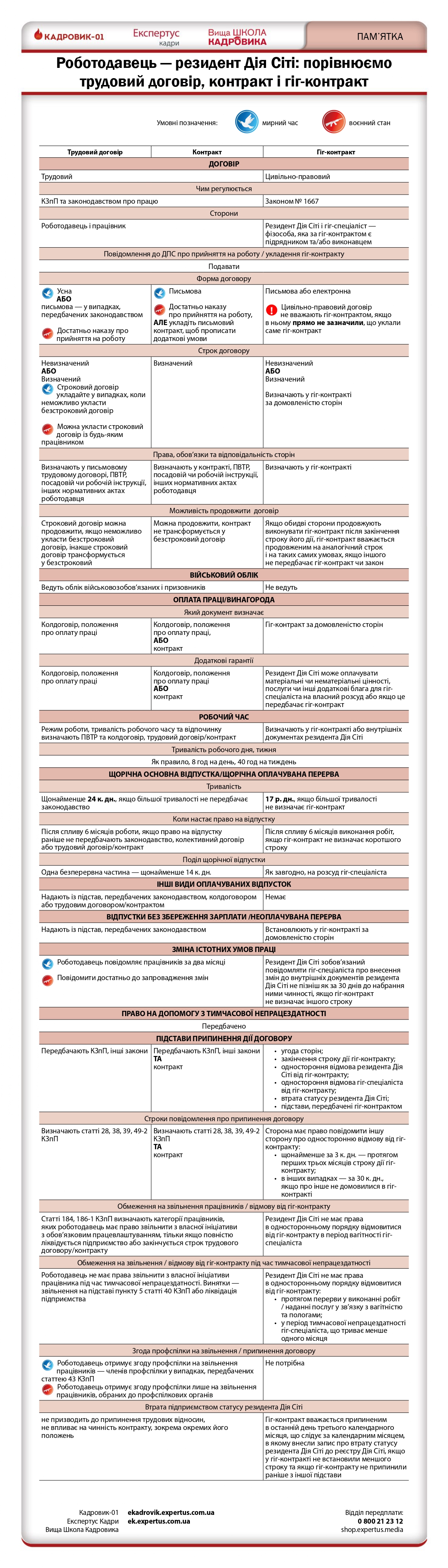 Дізнайтеся, чим відрізняються трудовий договір, контракт і гіг-контракт для роботодавця — резидента Дія Сіті