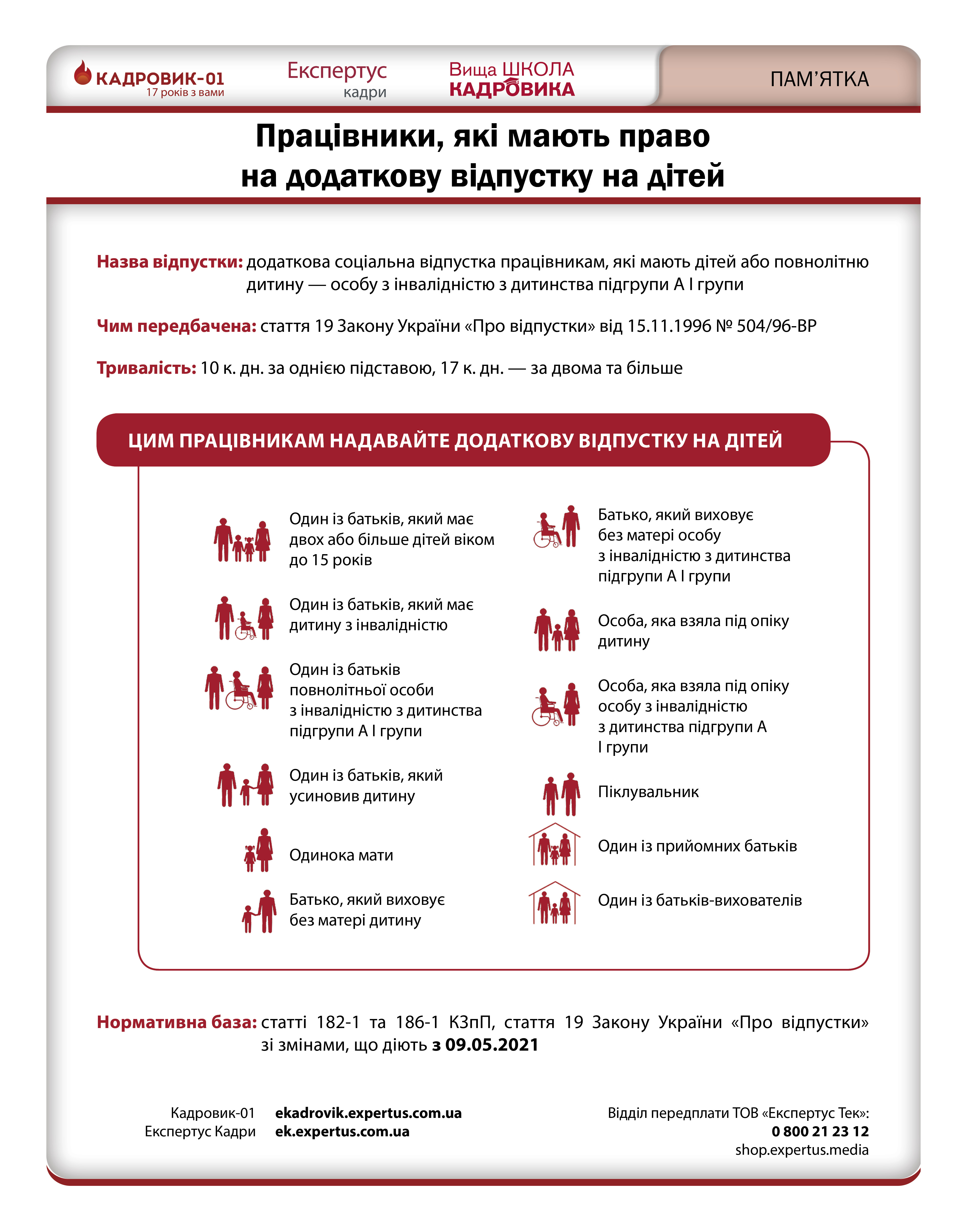Пам’ятка. Працівники, які мають право на додаткову відпустку на дітей