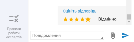 8. Для того щоб оцінити роботу над поповненням бази даних за шкалою від 1 до 5, натисніть на зірочки в кінці онлайн-чату чи спілкування в розділі «Письмово».