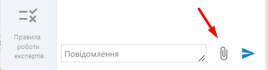 4. Пересилайте скріни, що ілюструють різноманітні техпроблеми, які складно описати словами. Для цього натискайте на зображення стрілки в Онлайн-помічнику. Однак зауважте, що відповідно до Правил роботи експертної підтримки, ми не аналізуємо робочі документи, заповнені форми звітності.