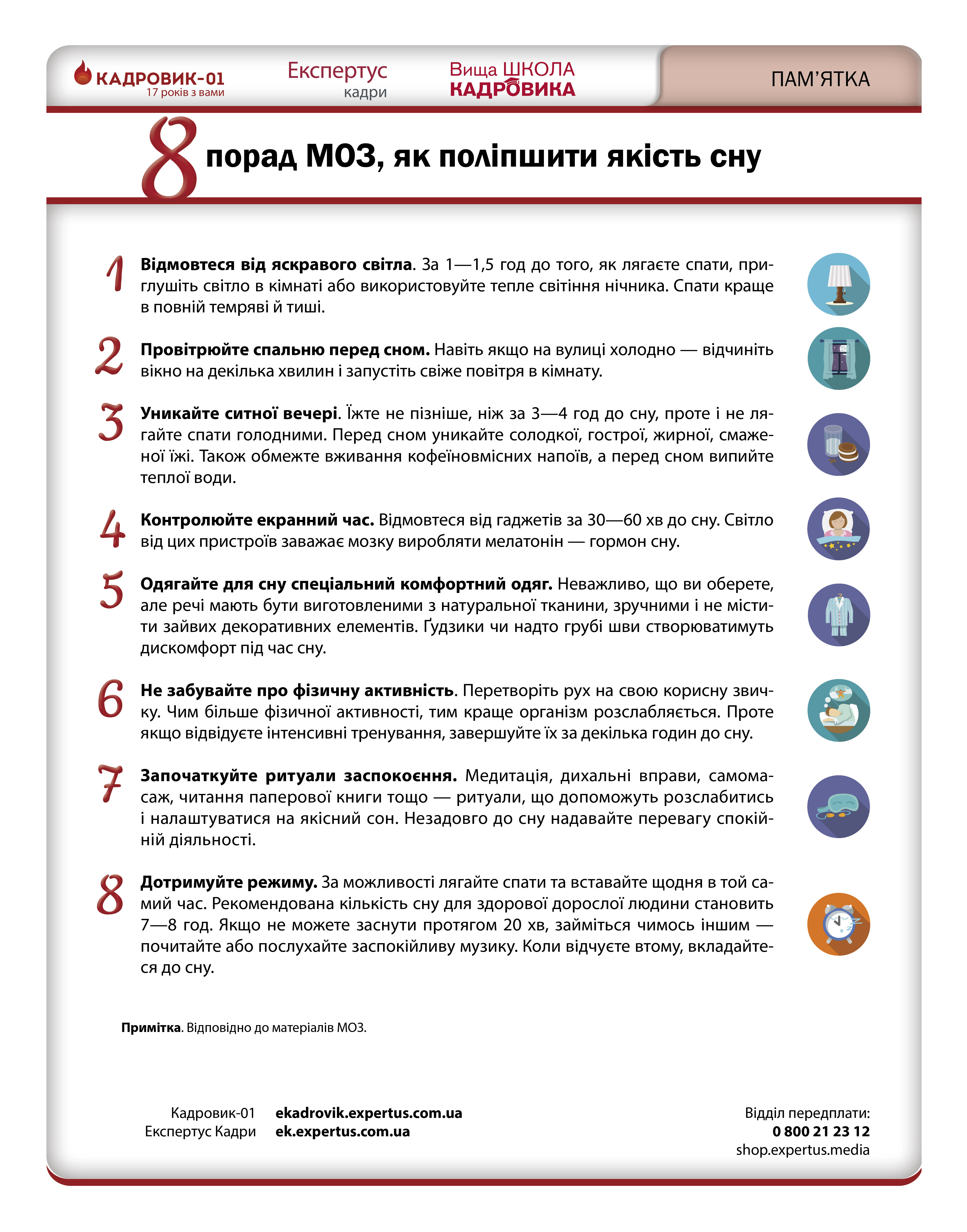 Пам’ятка. 8 порад МОЗ, як поліпшити якість сну