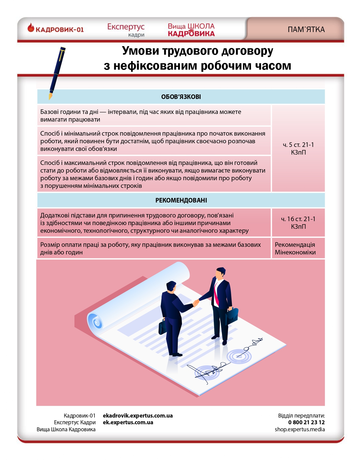 Пам’ятка. Умови трудового договору з нефіксованим робочим часом