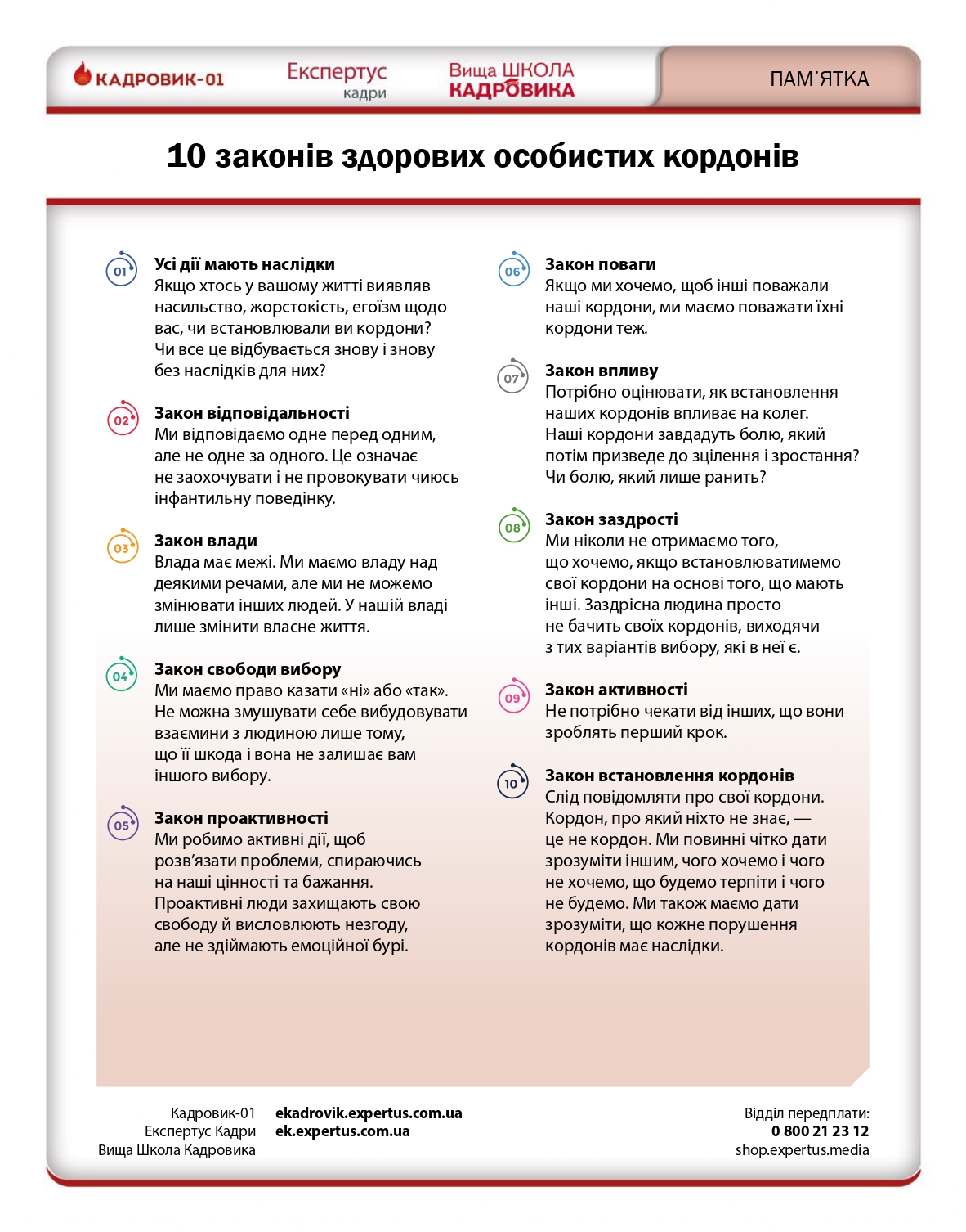 Докладніше про процедуру:Як захистити особисті кордони — практичні порадиЯк протистояти маніпуляціям під час ділового спілкування