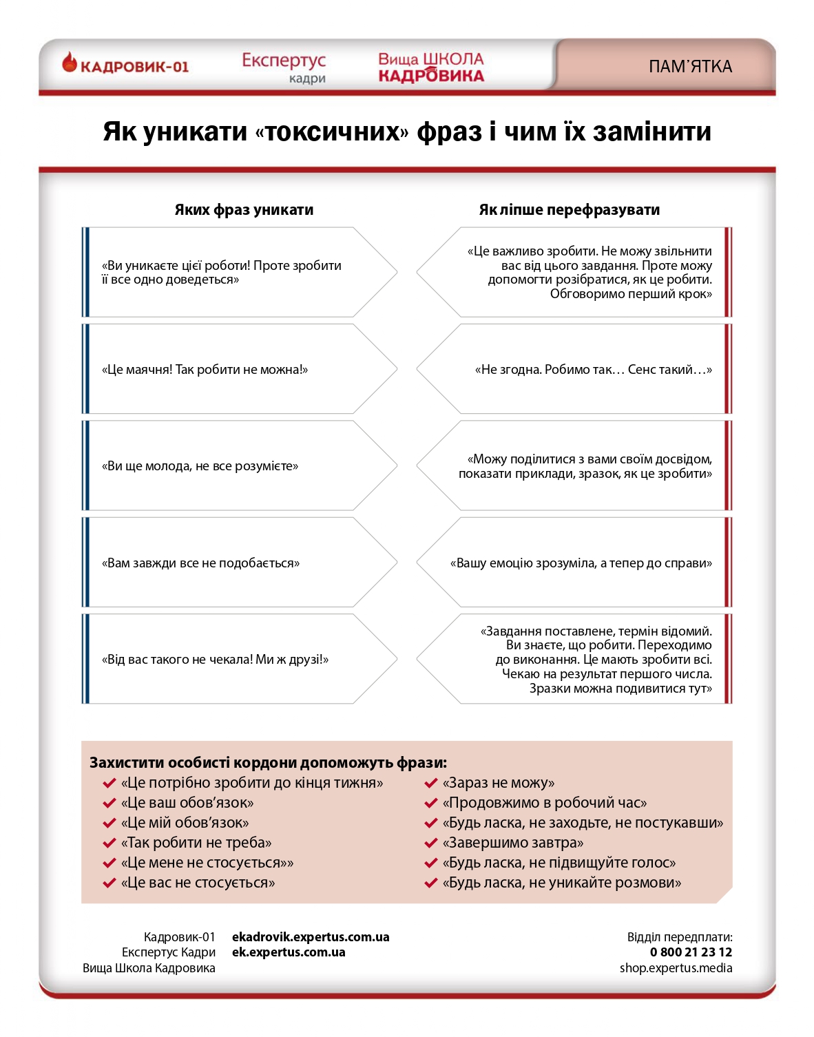 Докладніше про процедуру:Як захистити особисті кордони — практичні порадиЯк протистояти маніпуляціям під час ділового спілкування
