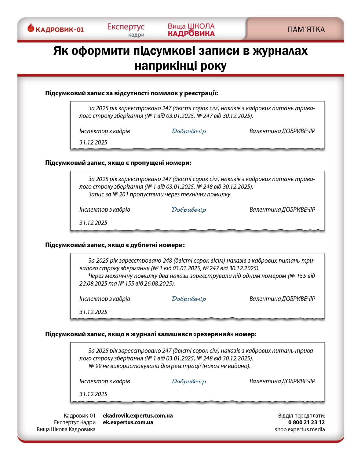 Докладніше про поцедуру:Сім обов’язкових справ кадровика в грудні — січніЯк закрити журнали реєстрації в кінці діловодного року і підготувати облікові форми на наступний рік