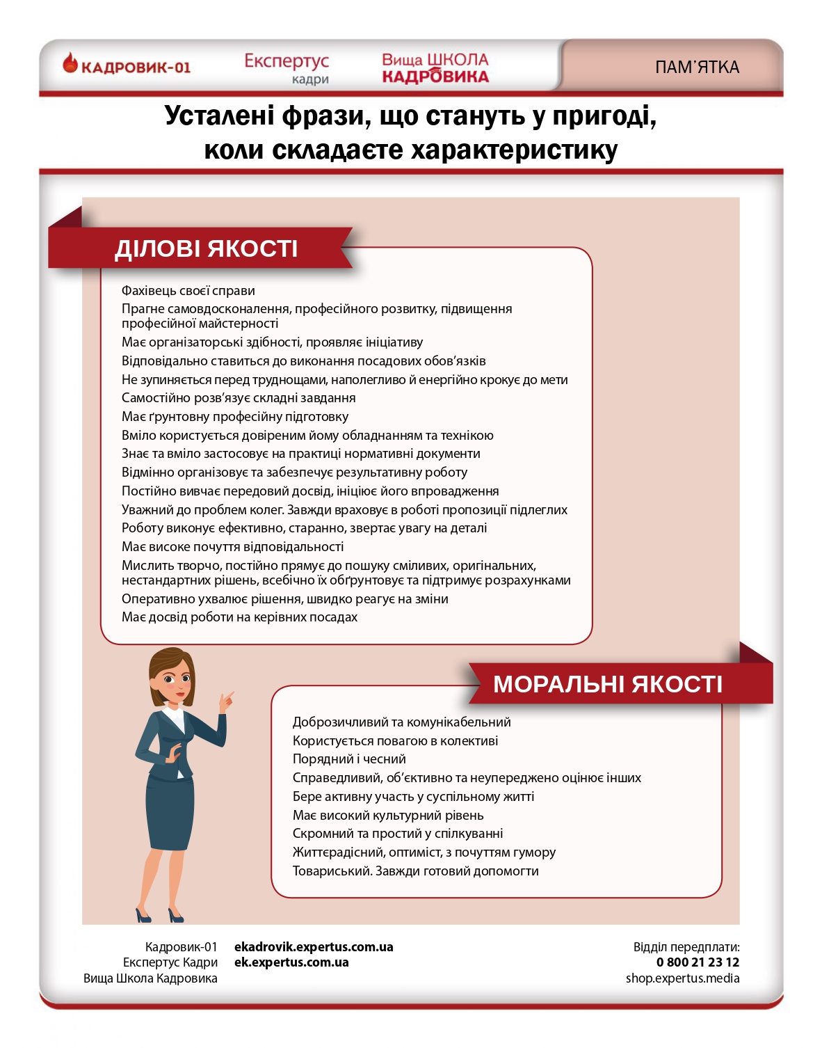Пам’ятка. Усталені фрази, що стануть у пригоді, коли складаєте характеристику