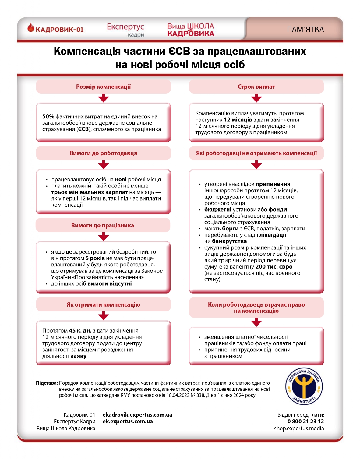Докладніше про процедуру:Компенсація частини ЄСВ за працевлаштуванням безробітних на нові робочі місця