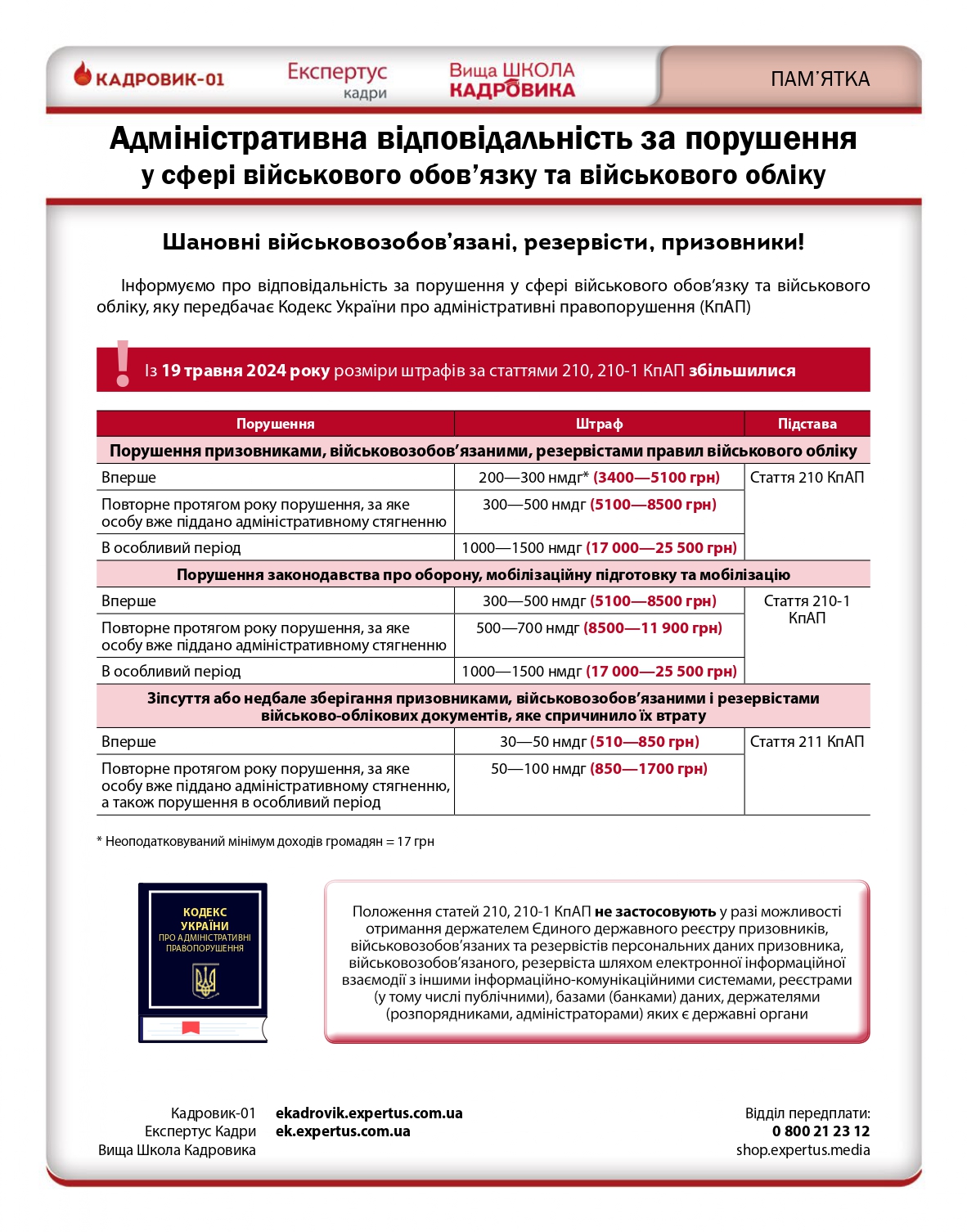 Пам’ятка. Адміністративна відповідальність працівника за порушення у сфері військового обов’язку та військового обліку