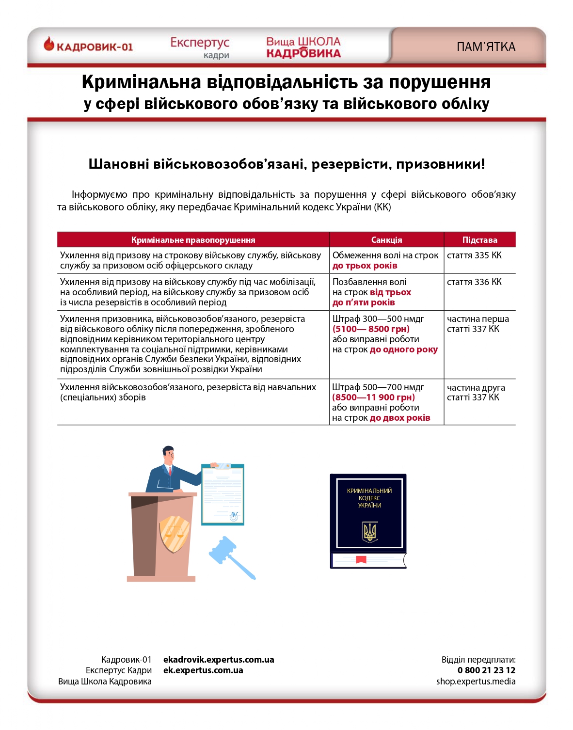 Пам’ятка. Кримінальна відповідальність працівника за порушення у сфері військового обов’язку та військового обліку