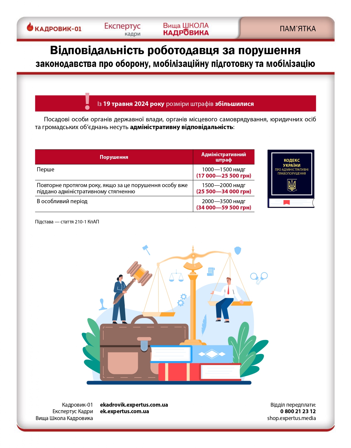 Пам’ятка. Адміністративна відповідальність роботодавця за порушення у сфері військового обов’язку та військового обліку