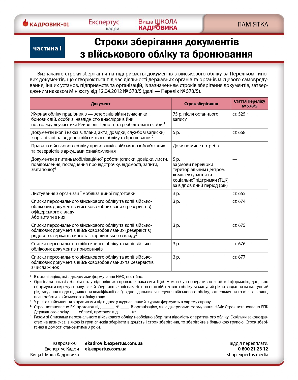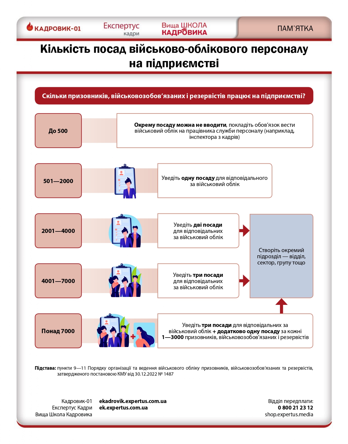 Пам’ятка. Кількість посад військово-облікового персоналу на підприємстві