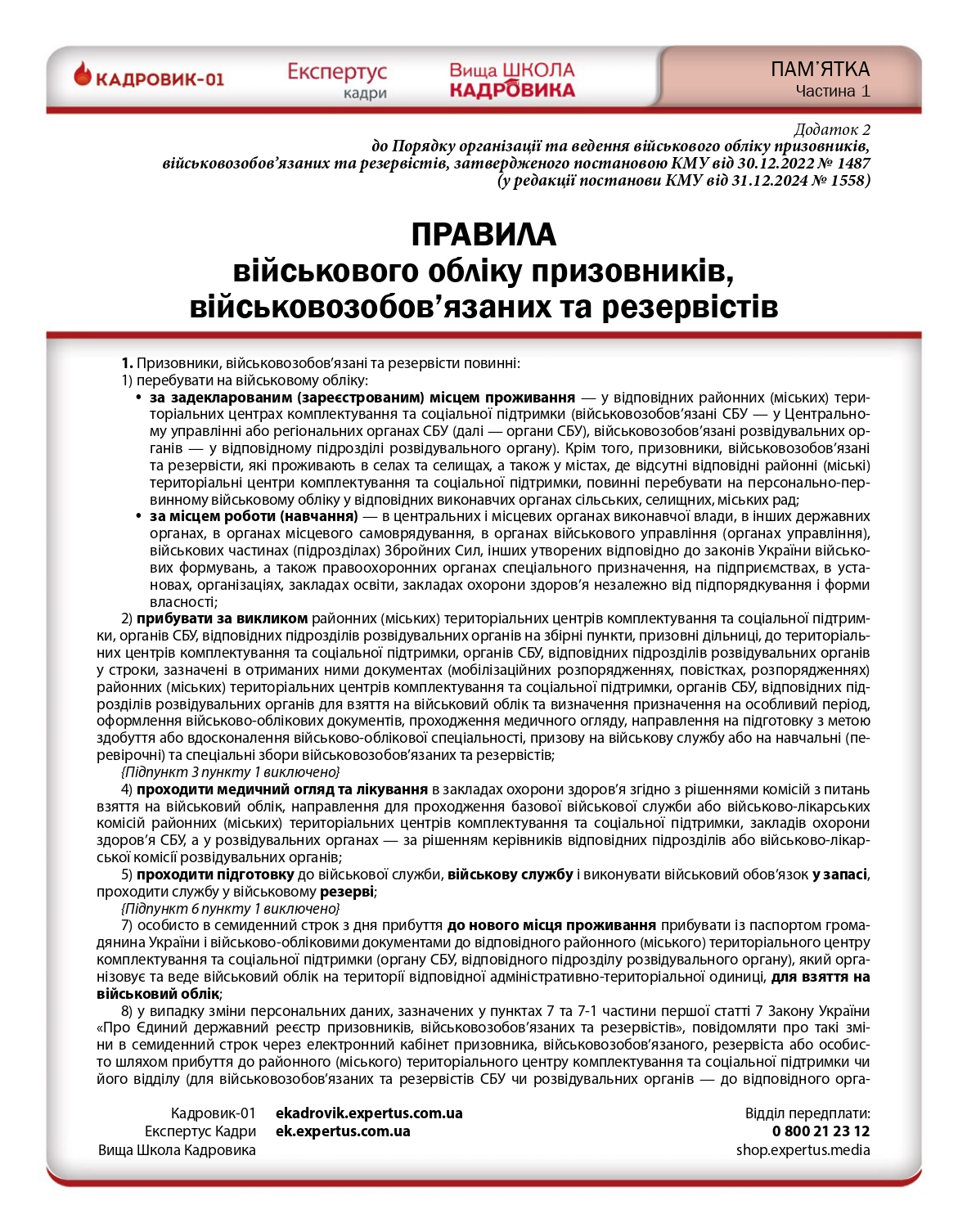 Пам’ятка. Правила військового обліку призовників, військовозобов’язаних та резервістів 1, 2 частини