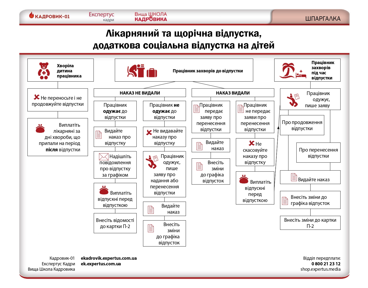 Лікарняний та щорічна відпустка, додаткова соціальна відпустка на дітей
