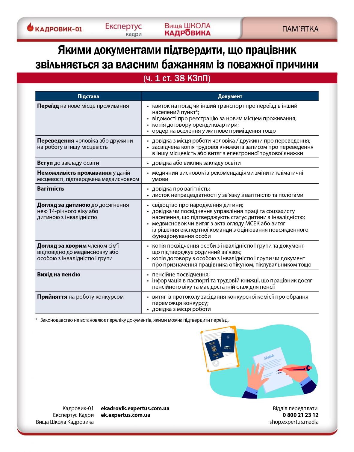 Пам’ятка. Якими документами підтвердити, що працівник звільняється за власним бажанням із поважної причини