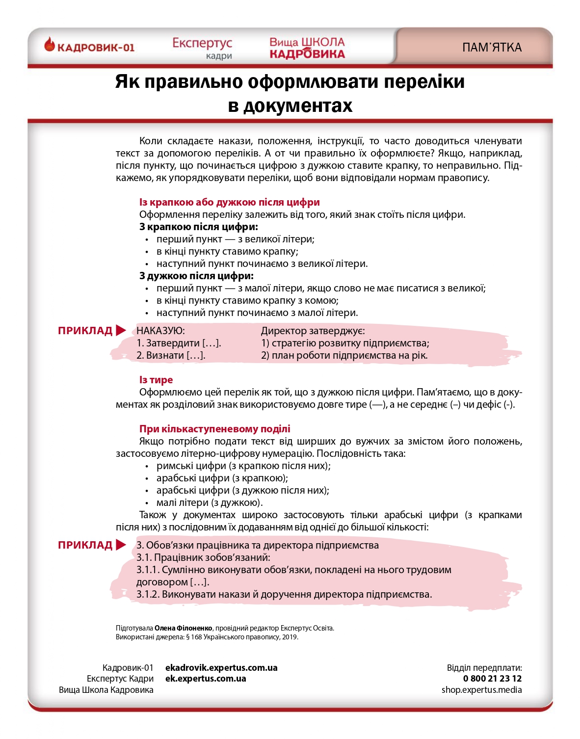 Пам’ятка. Як правильно оформлювати переліки в документах