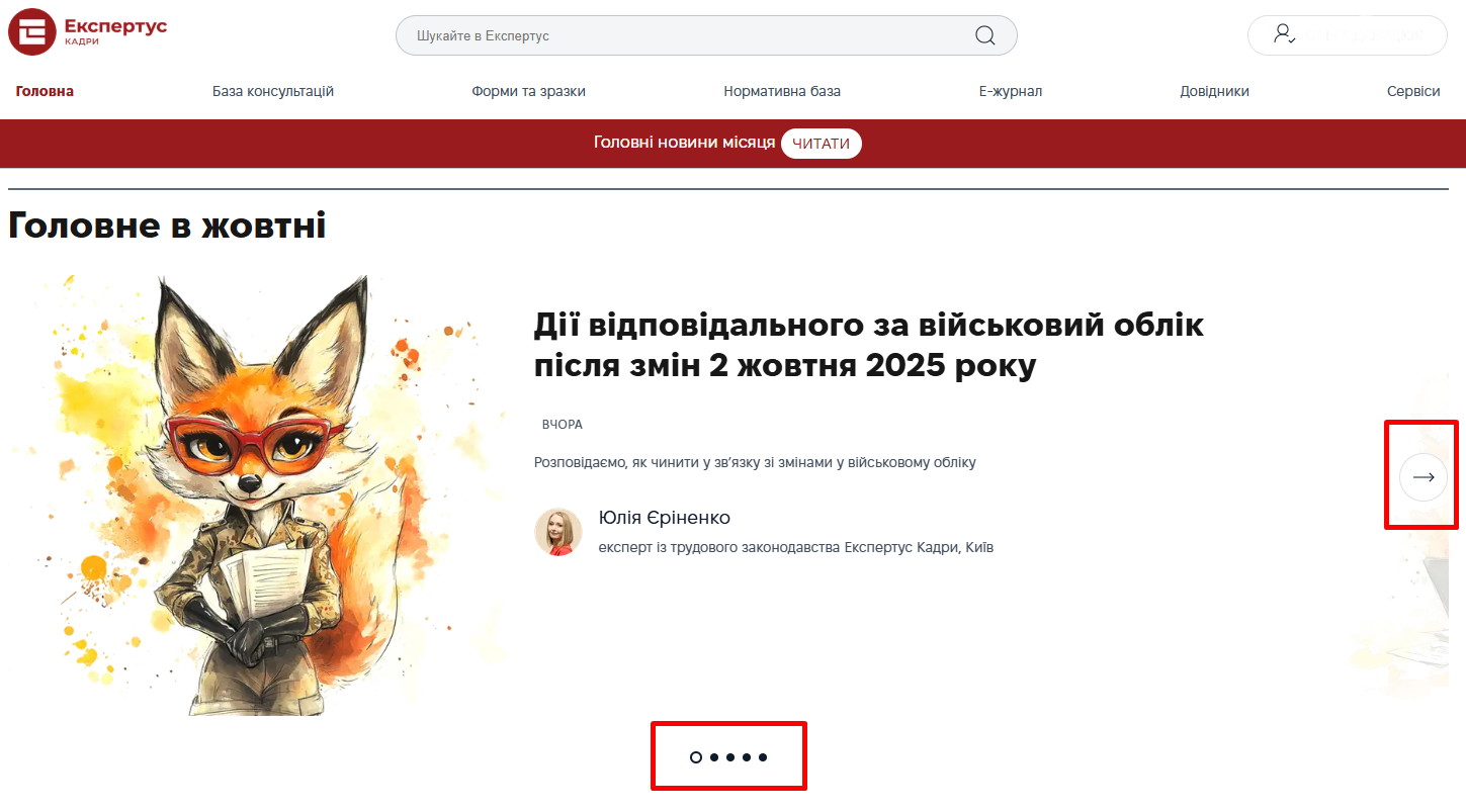 Головні теми місяця — у слайдері. Гортайте його за допомогою стрілочки праворуч або крапок внизу, щоб побачити всі теми й бути на крок попереду (рис. 3).