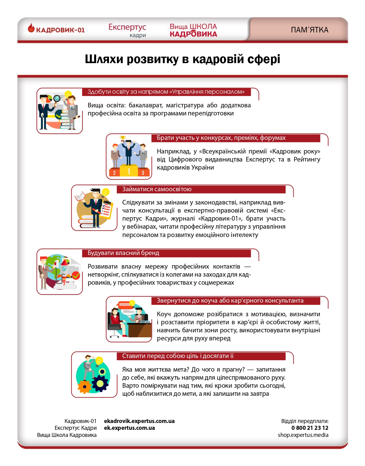 Для кадровика існує чимало шляхів, щоб розвиватися. Наведемо найбільш очевидні серед них.