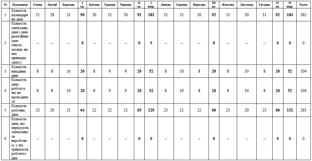 Використовуйте в роботі таблицю з нормами тривалості робочого часу на 2025 рік для п’ятиденного робочого тижня